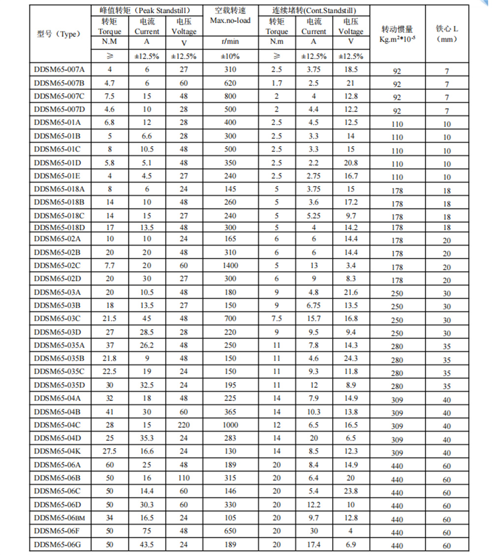 | DDSM65系列無刷直流力矩電機(jī) |