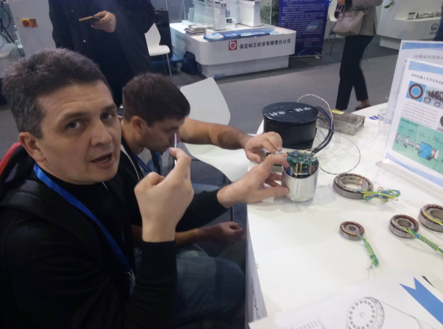 以“創(chuàng)新、智能、綠色”為主題的第19屆中國國際工業(yè)博覽會于2017.11.7-11日在上海國家會展中心舉行。河北省宇捷電機科技有限公司在4區(qū)河北省工業(yè)展區(qū)內(nèi)進行了產(chǎn)品展示,據(jù)統(tǒng)計第19屆中國國際工業(yè)博覽會歷時5天、參展規(guī)模和專業(yè)觀眾數(shù)量均創(chuàng)歷史新高,據(jù)大數(shù)據(jù)監(jiān)測平臺實時數(shù)據(jù)顯示,截至11日中午12:30,本屆中國工博會共吸引境內(nèi)外專業(yè)觀眾超16萬人次,較去年同期增長近6.67%。河北省宇捷電機科技有限公司展臺前咨詢和觀看電機的人員絡(luò)繹不絕,尤其是其中的機器人專用無刷直驅(qū)電機TBSM系列正弦波無刷力矩電機,可稱為此次參會的明星產(chǎn)品。